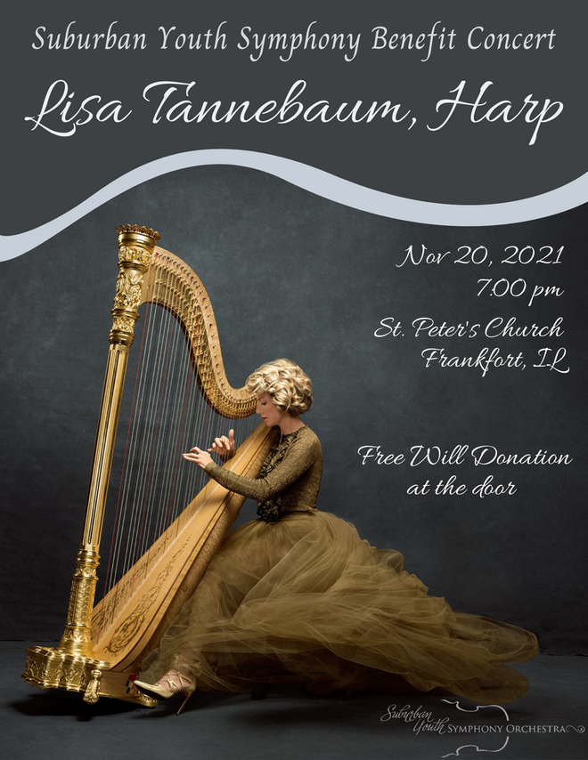 Save the date! Saturday, Nov. 20, 2021, Harpist Lisa Tannebaum will be giving a FREE concert at St. Peter's Church in downtown Frankfort Illinois.