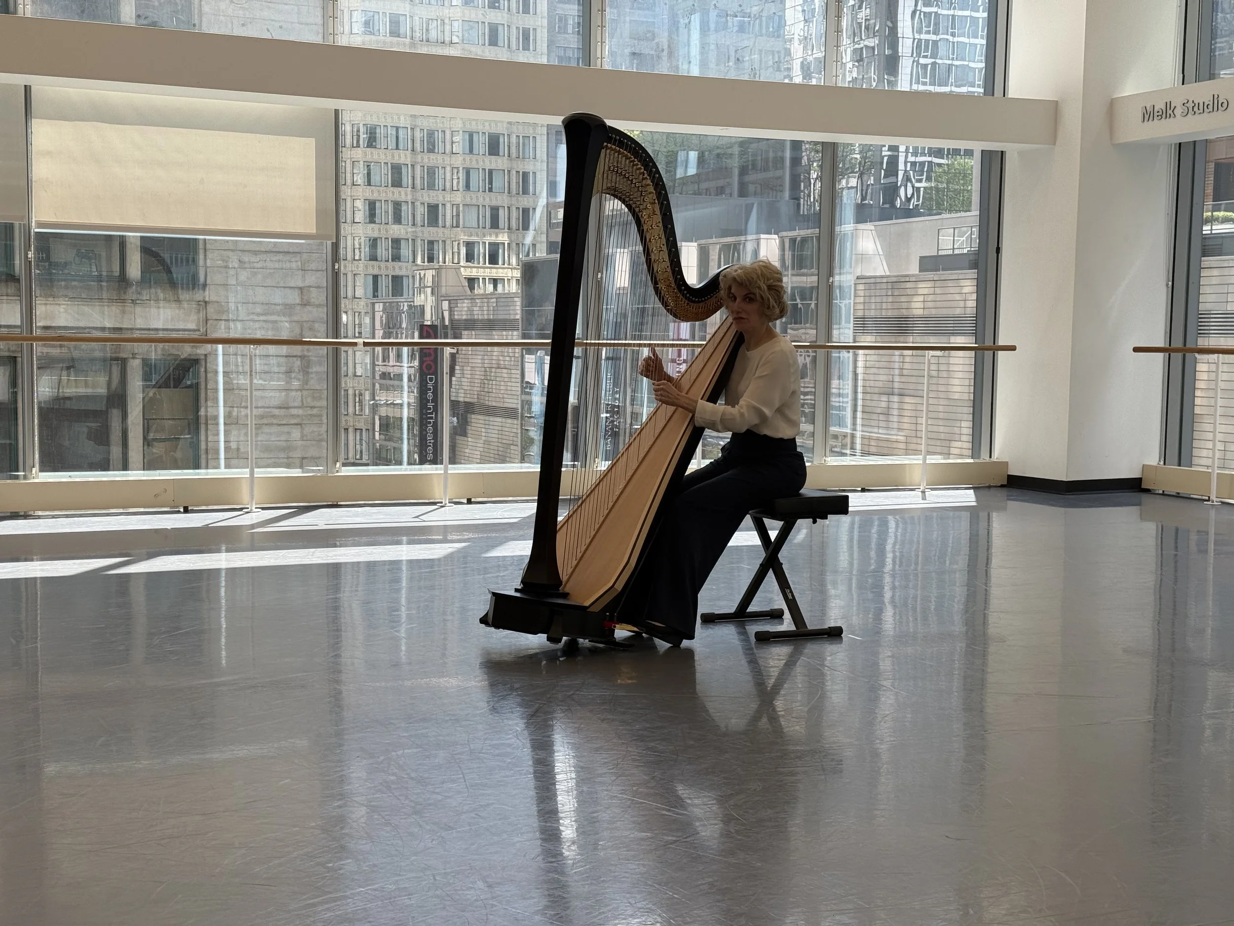 As a harpist, I think a lot about time in phrasing, breath, or where sound lives in the air. But in the studio, that all shifts. The dancers listen and adapt with their whole bodies. A pause held in muscle feels different than a pause held in music. It stops being accompaniment and starts being conversation.